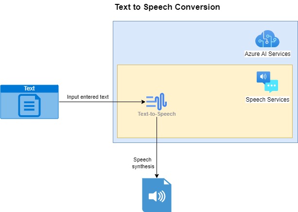 An overview of how the conversion works with the Azure AI Speech Service works to take input text and convert it to a sound file using the Text to Speech SDK in shown below:
