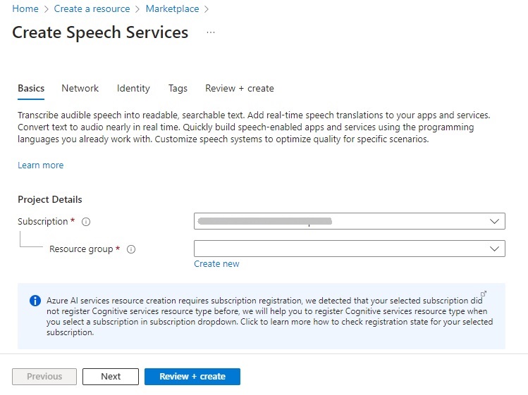 With Microsoft Azure AI Services, we can create a subscription to an AI Speech Service that provides us with the capability of translating from text to speech to text and from speech to text.