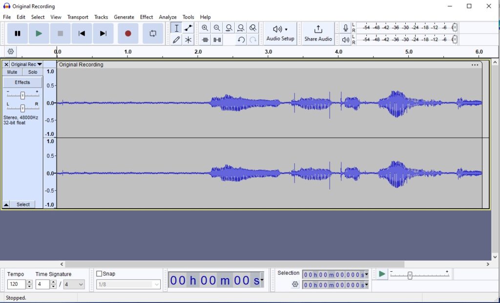 Following installation, you should be able to open any M4A audio file and load it successfully into Audacity.