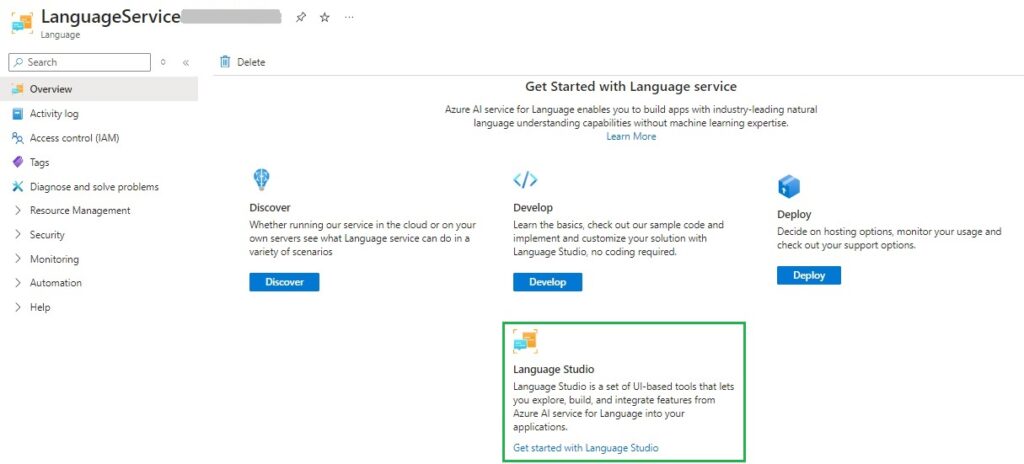 In the next section, I will show how to start off by creating an Azure Language Service resource, which is what is required before we can create a Azure Language Studio project.